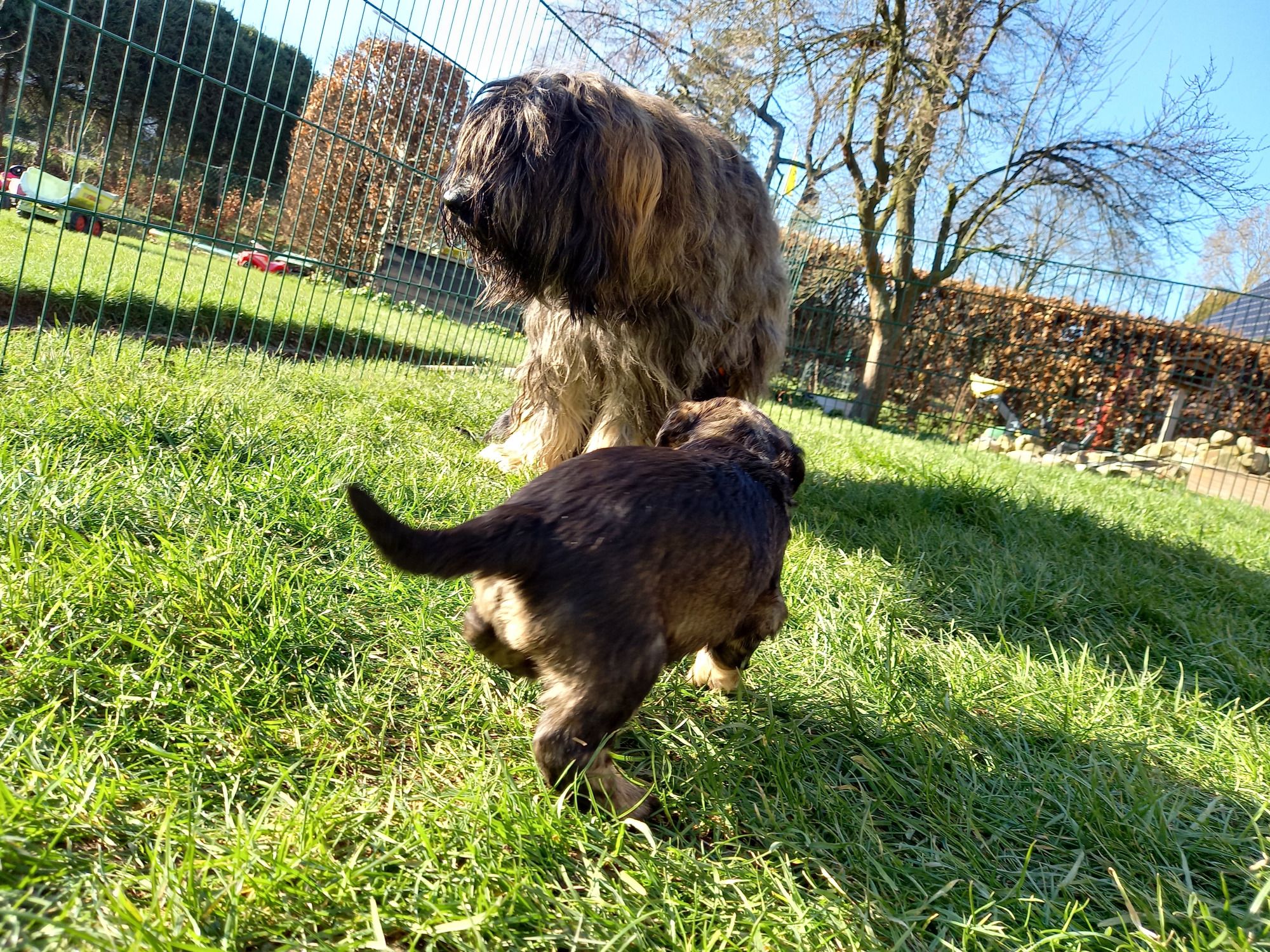 Nachdem wir in den letzten beiden Wochen weiterhin perfektes Wetter für die Welpenaufzucht genießen durften, haben die kleinen heute zur Abwechslung auch noch Schnee kennenlernen dürfen - und den Papa :-)